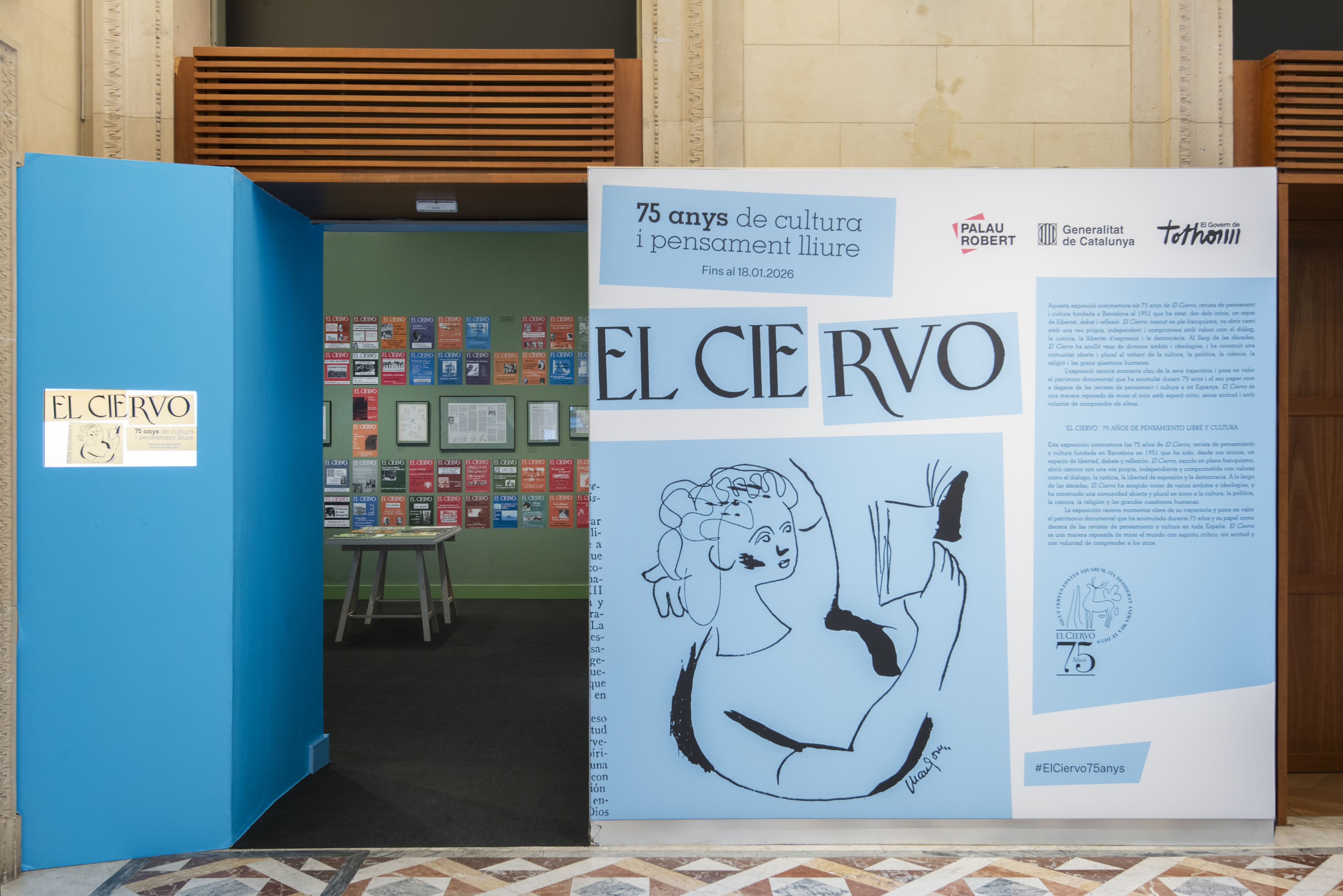 Palau Robert hosts the exhibition El Ciervo. 75 Years of Free Thinking and Culture, curated by Sergi Álvarez Riosalido. The exhibition is a joint initiative between the magazine El Ciervo—the oldest cultural publication in Catalonia and Spain—and the Direcció General de Difusió of the Generalitat de Catalunya.