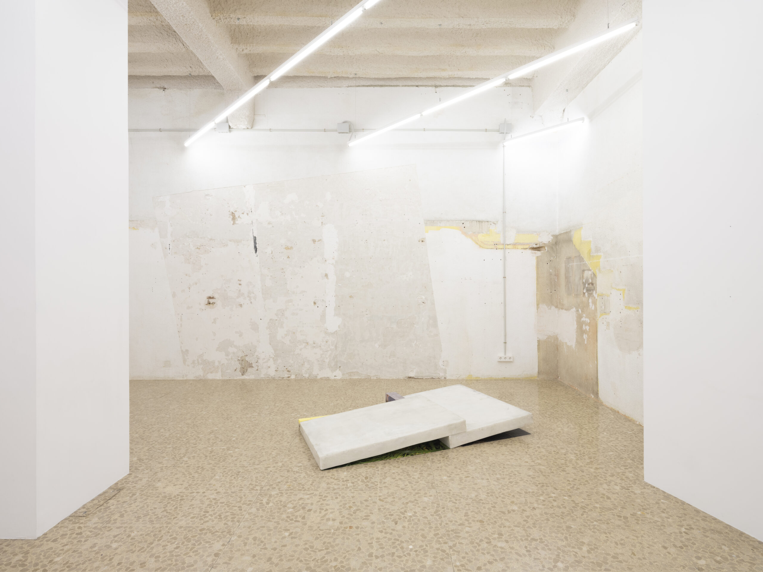 La composición escultórica en esta exposición propone un mapa de fragmentos que cuestiona la jerarquía entre soporte y figura. Las peanas, desprovistas aquí de su función de presentación, funcionan como plataformas con vocación de horizonte, que modulan la manera en que las formas se nos aproximan. Esta relación con la escala activa una extrañeza perceptiva que desfamiliariza las formas originales. Algunas parecen mármol, pero son sal, otras conservan las huellas del proceso que les dio forma –desde el trabajo con los moldes hasta las marcas de desbaste y corte en las piedras–, otras aún retienen la vibración de un gesto o de una fotografía. Todo parece conservar algo de su metamorfosis.